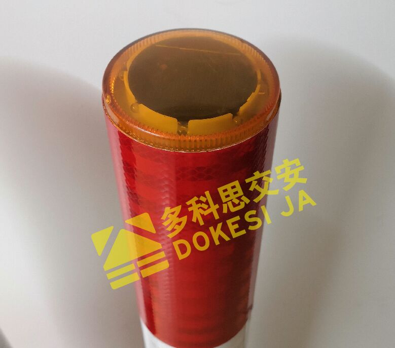 1、材質(zhì)工藝:采用熱鍍鋅鋼管外貼紅白相間反光膜,頂部設(shè)置發(fā)光柱帽,內(nèi)置太陽(yáng)能板、蓄電池。