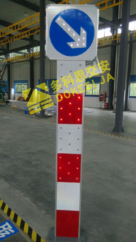 2、基本說明:采用一體式柱體結(jié)構(gòu),標志版面圖案中嵌入LED發(fā)光管,柱體上設(shè)置警示發(fā)光管,采用太陽能蓄電池供電,設(shè)置于中央隔離帶端口。