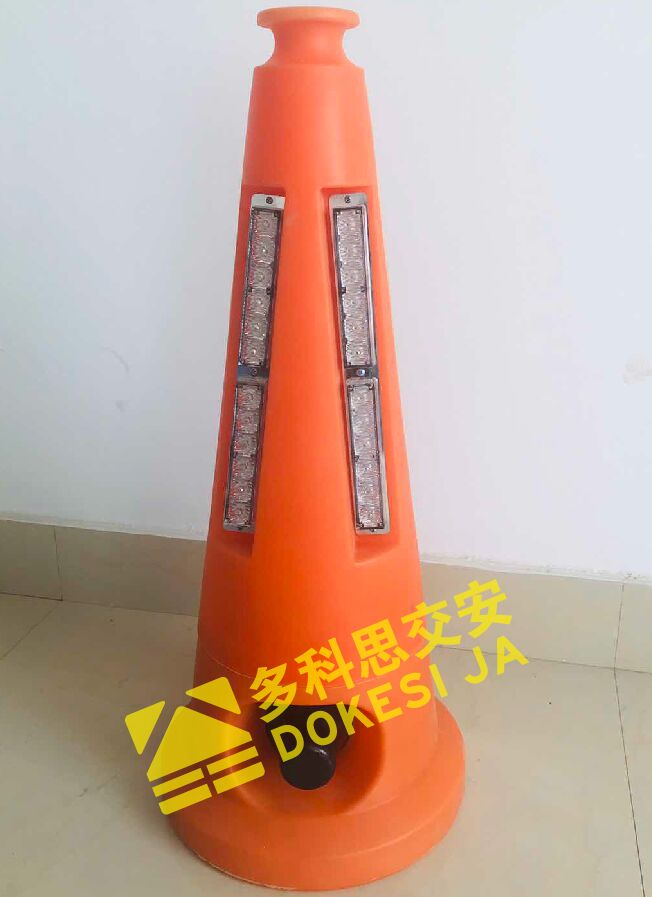 1、基本說明:產(chǎn)品整體為三角交通路錐形狀,采用專用注塑模具定制而成,凹槽內(nèi)置條狀紅藍(lán)警示燈條,內(nèi)部設(shè)置高音預(yù)警喇叭,聲、光、形多面立體警示,能高效預(yù)警危險(xiǎn)元素。
