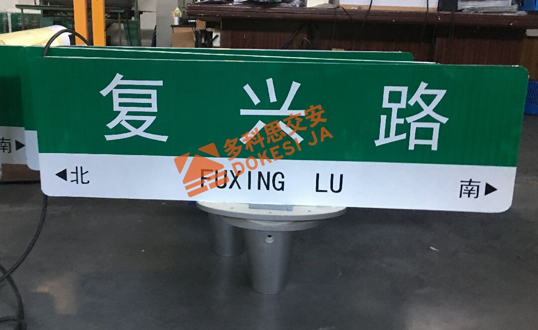 4、顏色:東西方向,上方為藍底白字;南北方向,上方為綠底白字;下方均為白底黑字。反光膜為二級高強反光膜。