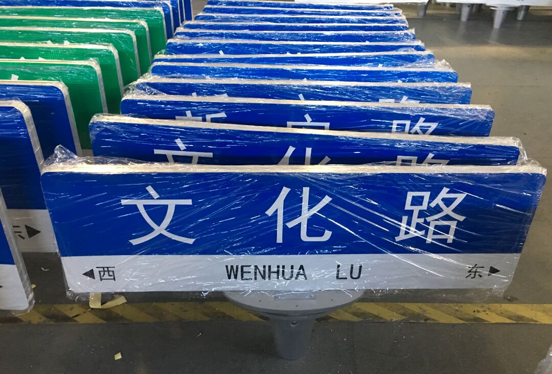 1、市政道路路名牌,俗稱“路名牌”、“城市道路路名牌”、“路名指示牌”等,各城市都出臺相應的地方標準,常用的款式為托盤式市政道路路名牌。
